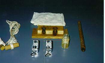 火起こし台、火起こし棒、小さな薬瓶、雑巾、取っ手になる棒、ロープ、クランプ(必要に応じて)