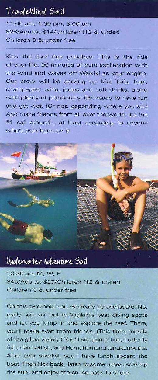 | ハワイの表紙に戻る | リーフレットのぺージへ | カタマラン(2)へ |