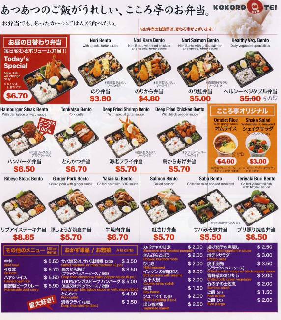 クヒオ通りのワイキキウエスト西にあるお弁当屋さんのメニューです。カウンターで注文するとその場で作ってくれ、そのまま持ち帰りです。