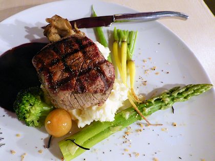 メニューをもらって予定通り150gのフィレステーキ38ドルと6ドルのアイスティを頼みました。焼き加減はミディアムレアと伝えましたが、ばっちり私の好みで、どちらも味は良かったです。